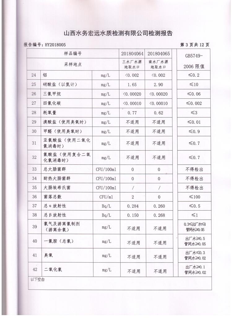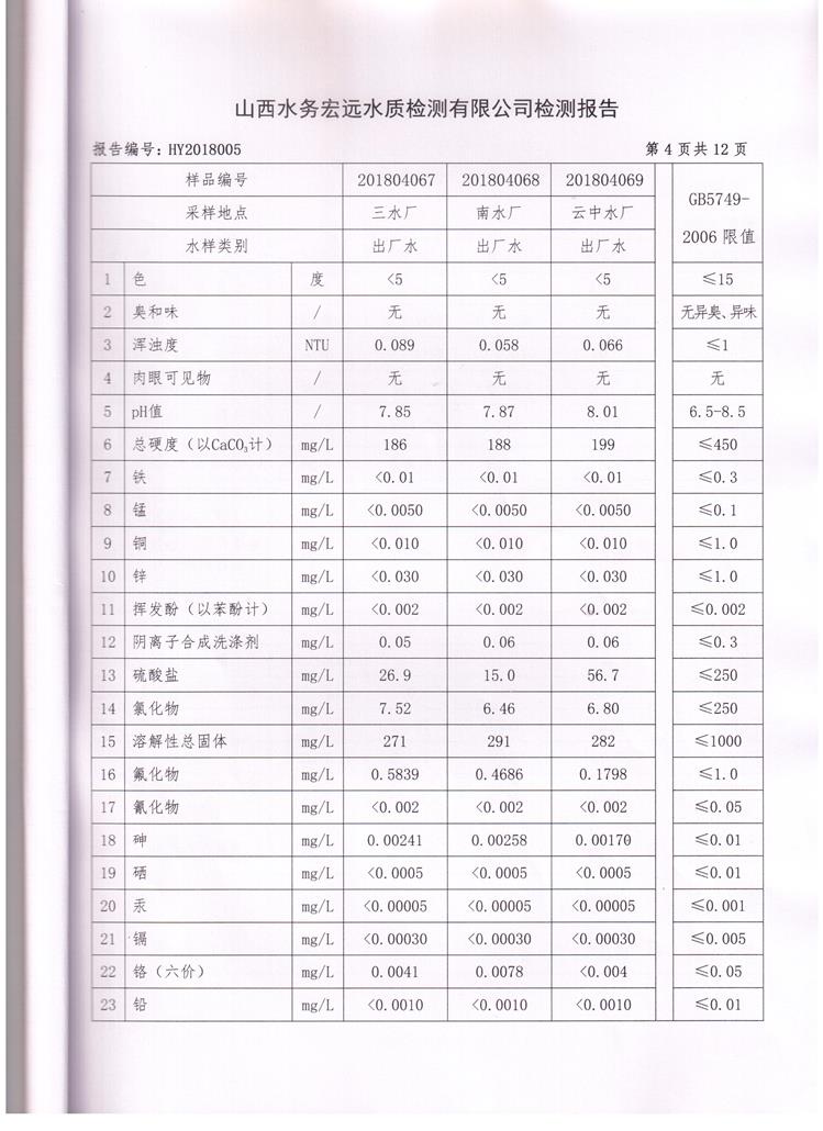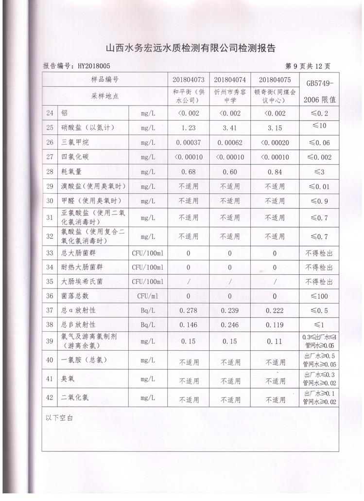 忻州城區(qū)公共供水水源水、出廠水、管網(wǎng)水、管網(wǎng)末梢水2018年4月份水質(zhì)信息公示