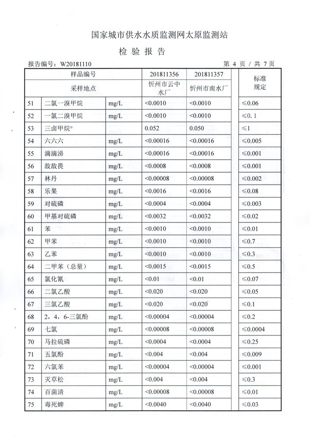 2018年忻州城區(qū)公共供水南水廠、云中水廠出廠水106項(xiàng)水質(zhì)全分析信息公示